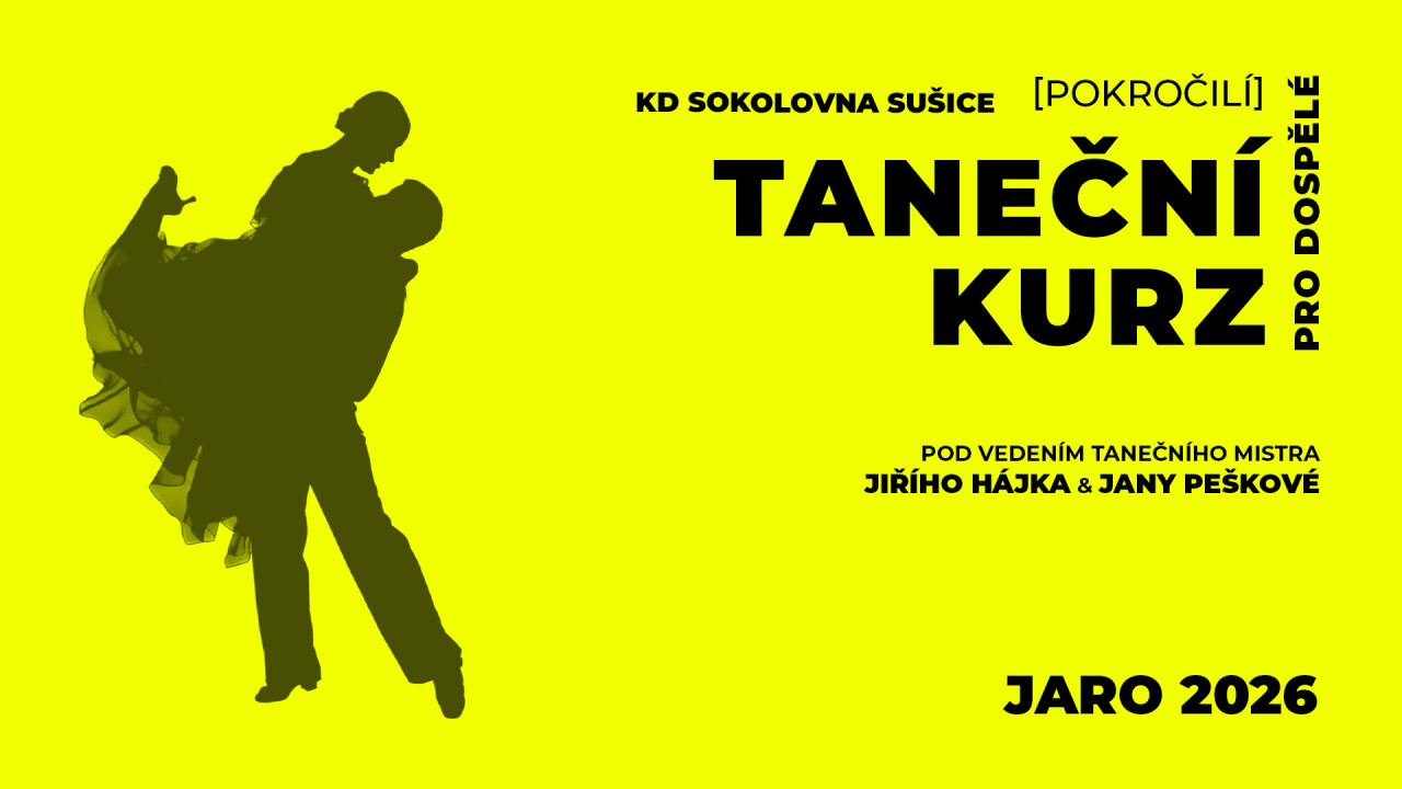 Kurz proběhne v termínu 15. ledna – 26. března 2026 v KD Sokolovna Sušice vždy ve čtvrtek od 18:30 – 21:00 hod.