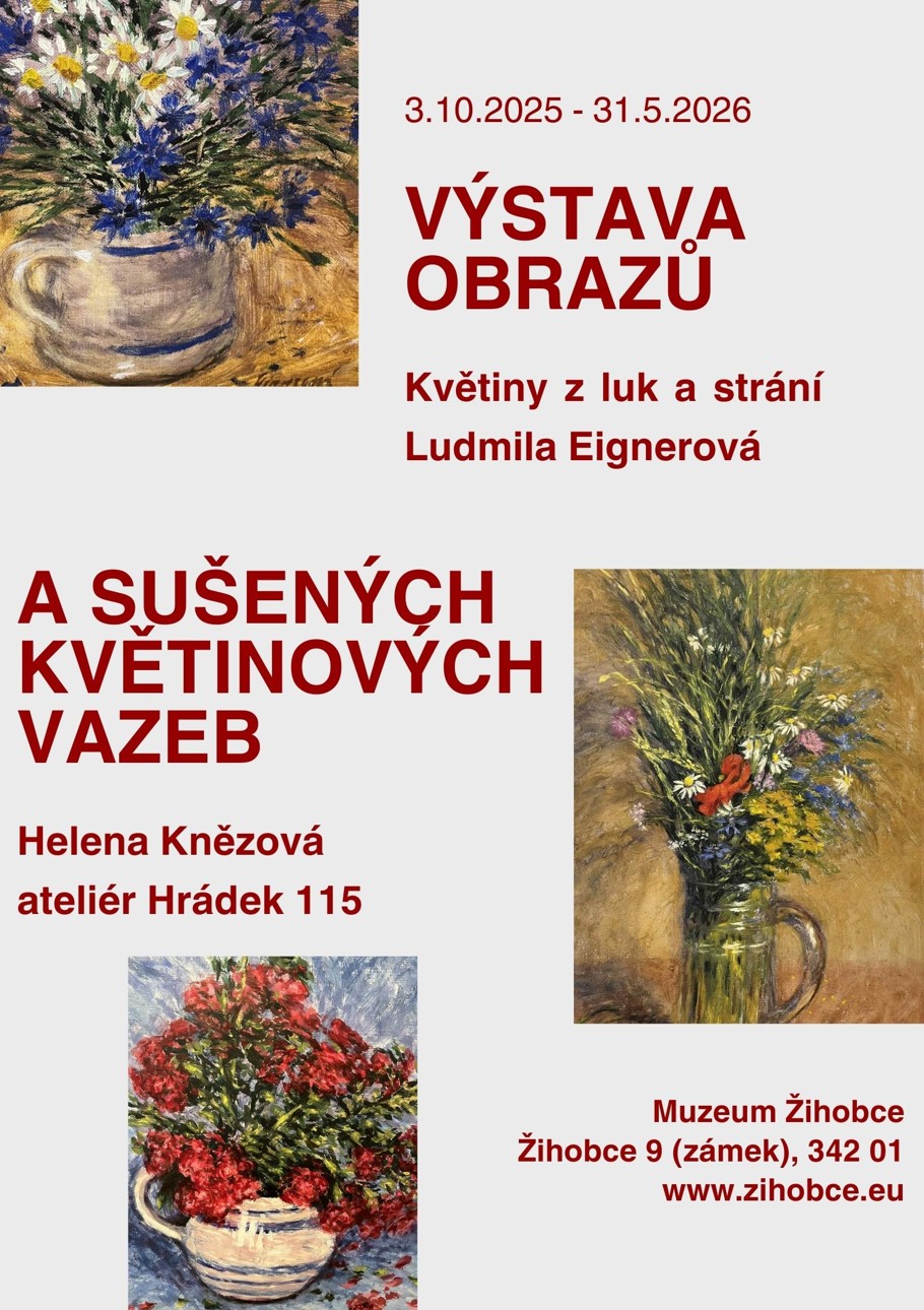 Výstava obrazů květin z luk a strání Ludmily Eignerové doplněná sušenými květinovými vazbami Heleny Knězové. Výstava vás v tomto zimním období přenese do časů léta a slunce.