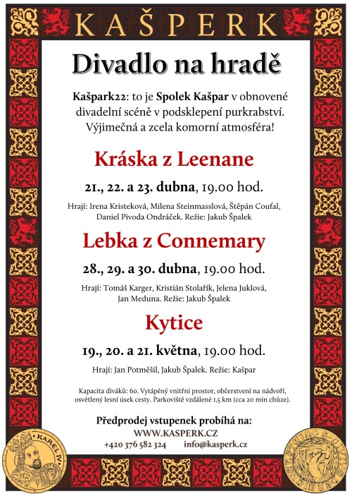 Divadelní představení na hradě Kašperk! Spolek Kašpar už v květnu, tentokrát v obnovené komorní scéně v podsklepení purkrabství. Vytápěná místnost, střecha nad hlavou, to je jistota divadla za každého počasí!